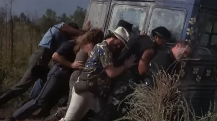 - And they push it into a ravine because nobody was behind the wheel, what idiots