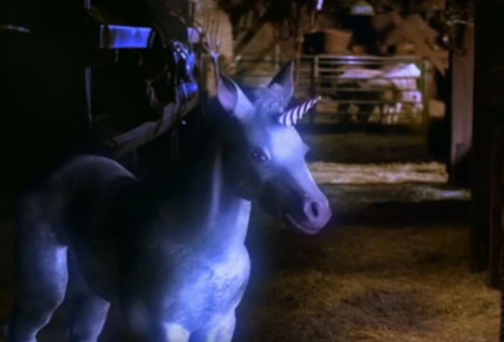On the evening that a family’s horse is dying in childbirth, a girl makes an bizarre wish that a unicorn would show up to make everything right. Well, the horse still dies (spoiler!) but not before it gives birth to a horrible atrocity of a CGI unicorn. That monkey paw always has a trick up its non-existent sleeve, does it not?