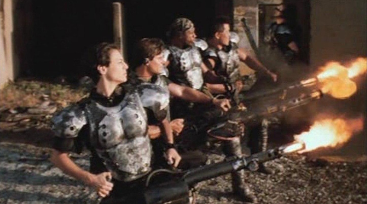 In any case, this movie might as well be called Emotionally Unstable Troops Walk Down Dusty Roads And Sometimes Shoot Wildly At Stuff. Everyone is emote-acting to a degree that makes them come off as nap-deprived toddlers instead of professional soldiers. And the Terminator guy looks absolutely wrong for the part, as if someone kidnapped Ryan Stiles, slapped on some plastic, and forced him to give his best RoboCop impersonation.