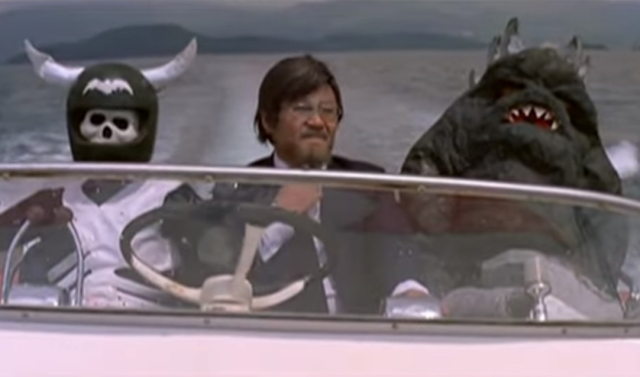 This movie came about thanks to the popularity of tokusatsu shows like Ultraman and Kamen Rider. With a few disco moves and a bellowed catchphrase, the everyman protagonist in these programs would transform into a (usually red) spandex-clad superbeing sporting a ridiculous helmet and ready to lay a smackdown on any henchmen henching about for whatever evil organization of evil they work for.