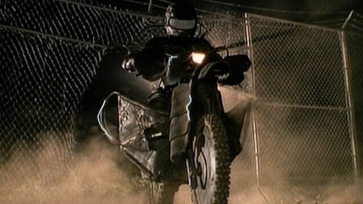 Despite the title implying a revenge spree of sorts, Murdercycle is actually an alien-terminator gig. A lost dirt biker (at night?) stumbles upon a meteor that transforms both him AND his bike into an unstoppable killing machine. Actually, that’s giving this makeover a lot more credit than it deserves. It’s like the prop crew decided to see how much flimsy plastic shells they could slap onto a bike in the hopes of evoking comparisons to the ’89 Batmobile. That fierce look is refuted by the bike’s limitations, which is that it (a) slow-mo jumps, (b) churns up dirt, and (c) shoots lasers, which is the bare minimum for any unit that calls itself a “murdercycle” in this day and age.