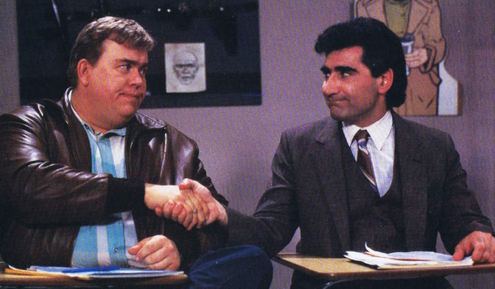 Maybe if I had seen Armed and Dangerous back in the ’80s, I would’ve known of Levy, his legendary eyebrows, and his witty mullet ahead of time. And I would’ve also been treated to a stealth Harold Ramis movie starring John Candy and Meg Ryan.