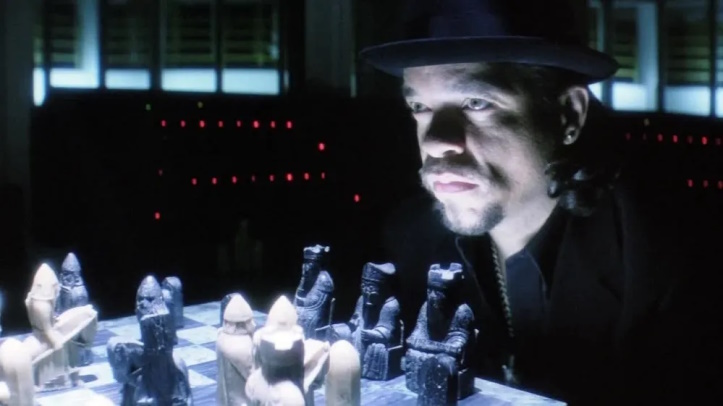 You’re going to want to obtain and use a five-point seat harness for this plot, lest you find yourself knocked flat onto the floor by its brilliance. And by that, I mean “unhinged lunacy.” The idea here is that Ice-T is Vincent Moon, the leader of a powerful crime syndicate that has just finished building a prison. To house itself? That seems a little at cross-purposes with crime, but I’m sure stranger things have happened.