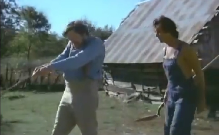 Our story begins with John (Hedges Capers) heading back home after deflowering his gal Lily (Sharon Henesy). While he presumes that all the disapproving remarks from the people he meets on his way back are due to his little indiscretion, it’s actually for something far darker. For his Grandpappy, who is also named John (a pre-Dukes of Hazzard Denver Pyle), has declared that he will challenge the Devil by singing the Defy at midnight.