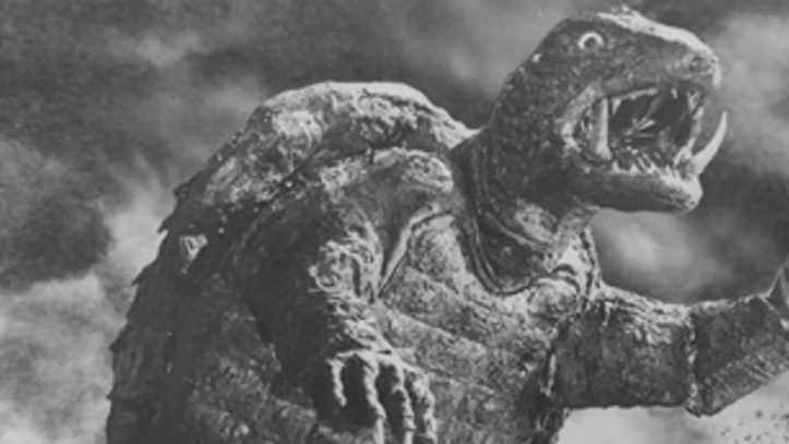 Gamera, or “Gammera” if he had enough pocket change for an extra M, was a Godzilla competitor that popped up in the mid-60s as Gamera the Giant Monster. That was repackaged for American audiences with some horrible filler scenes starring English-speaking actors merely talking about the turtle, which is the version I’m covering. In any case, this movie sparked a long-running franchise that continues even into the 2020s. I guess some people can’t function in life if they’re not being fed a steady diet of giant reptiles causing property damage.