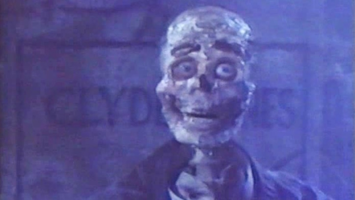 Popping out of a casket at the start of this direct-to-video movie is our skeletal host (and Rod Serling imitator) Igor. He’s so goofy and affable that I wish he had become a pop culture staple. He’s joined by five vultures that offer color commentary (three are supposed to be the Three Stooges and two are supposed to be Laurel and Hardy). It’s all so weird and wonderful that I was charmed out of my socks — and skin — right from the start.