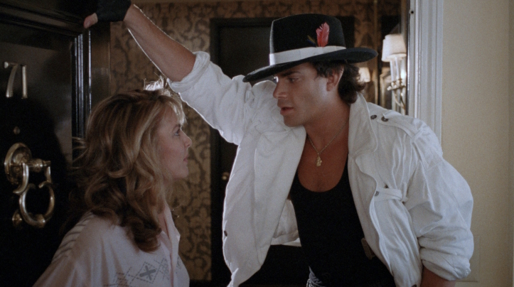 Suffice to say, he’s an alien from the planet Styx. An alien private eye, even. This is Lemro (Nicholas Hill), an extraterrestrial who’s all about wooing women, boogying, and finding two halves of a special disc that is the key to making the most addictive drug humanity’s ever seen. To do the last part, he’s going to have to go up against a poison-spitting gangster named Killgore (who prays to Hitler, I kid you not) and his many enthusiastic heavy metal minions. Also, there’s a nuclear bomb?