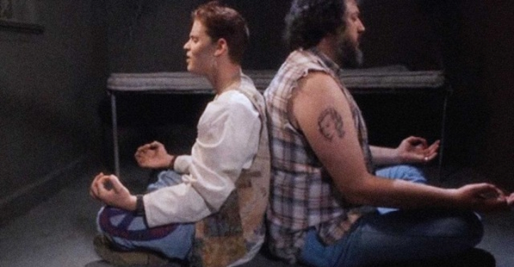 As with the first film, Dream a Little Dream 2 makes the bizarre choice to keep the Coreys apart for a bulk of the runtime. Here, Dingaling goes to jail and has to access his New Age mantra to talk to dead Coleman, while Bobby handles this riveting sunglasses espionage.