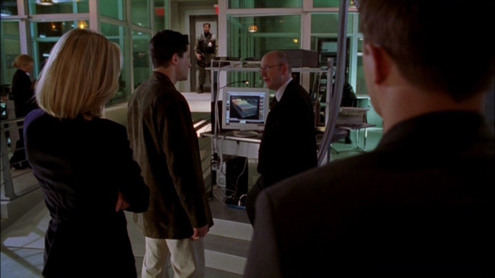 This being 2002, the time transition includes a lot of industrial techno and a bit of funky-bad CGI. I love this. It’s about the only moment in this episode where the show lets itself have some honest fun and not take itself overly serious.