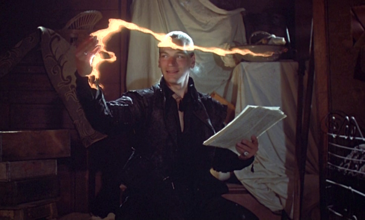 Despite a few deaths, Warlock isn’t a straight-up horror film in the way you might expect. It’s more like an occult thriller with some cheesy special effects, a witch hunter from the 1600s who’s more of a crack shot with a whip than Indiana Jones, and even a surprise Mennonite or two. It also contains, hands-down, the worst aging makeup I’ve ever seen in movies. It’s like botox and an allergic reaction to bees got together and said, “Wanna party?”