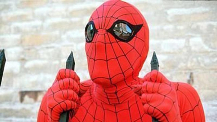 - I like how Spider-Man has all the poise of a peeping tom as he climbs up and down these buildings