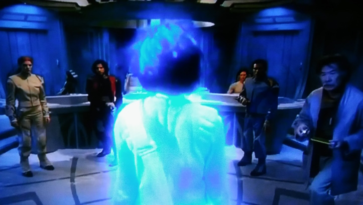 In the evacuation, an impromptu mixed crew jump into a spaceship, go to warp, and end up in an unfamiliar part of the universe on an… ICE PLANET. As they explore their strange surroundings, the big question of how they’ll find their way home comes up once or twice. Star Trek Voyager, Battlestar Galactica, Stargate Universe, and Lost in Space yawn, unimpressed.
