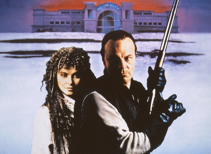 Neon City stars Michael Ironside in his slicked back hair and pony tail phase, playing ex-ranger, current bounty hunter Harry Stark in a 2053 post-apocalyptic society. Harry’s making a good living tracking down bounties in the Outlands, and he’s found himself one humdinger of a payday with a girl named Reno (Vanity). The only catch is that to cash in, he’s got to bring her to the titular Neon City across a whole bunch of inhospitable landmass.
