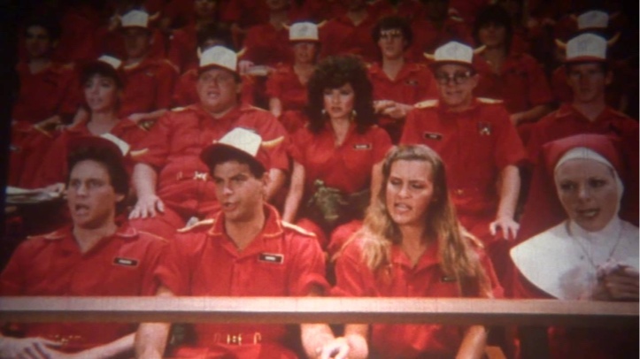 While I try to come up with a thesis on this for my PhD, I turn my eagle eye upon the regrettably named Hamburger: The Motion Picture. I have never thought that putting “The Motion Picture” as a subtitle ever made a movie more cool. Usually it’s the other way around. But in this case, it’s not like it’s letting down the word “hamburger.” There’s equal banality on both sides of that colon.
