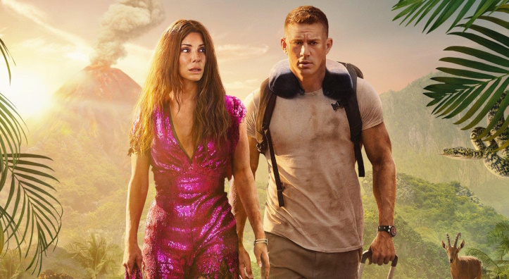 Lifting ideas wholesale from Romancing the Stone, The Lost City stars Bullock as Loretta Sage, a reclusive romance novelist (and widow) who used to be an archaeologist back in the day. Now she makes a ton of money from her writing and goes on book tours with Alan (Channing Tatum, 21 Jump Street), who is the cover model for the male love interest of her stories. Think “Fabio,” if you’re old enough to remember him.