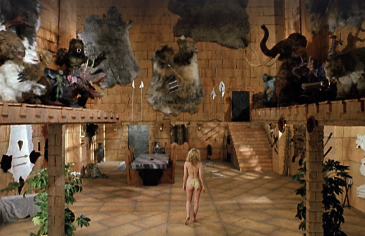 Somehow, though, actor Don Scribner didn’t get the memo. As Zed, he takes the part and the movie far too seriously. He attempts to be villainous and threatening while stalking his bikini-clad prey through a plastic jungle while accompanied by a pair of robots who look like they wandered in from the set of The Ice Pirates.
