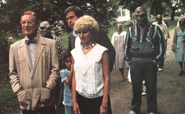 Strange Invaders is probably best known as “that movie where the aliens keep taking off their human masks to reveal these smaller, grotesque E.T. heads underneath.” They love this move more than any three of the Mission Impossible movies put together. When they’re not doing that, they’re zapping stuff with eye lasers and moving things with their minds.
