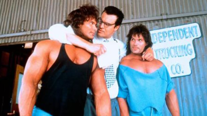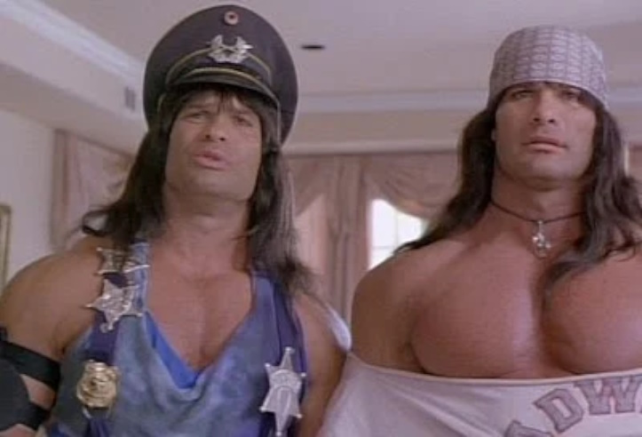 Justin’s review: Twin body builders Peter and David Paul are this fascinating case study in big beefy guys whose sheer dorky enthusiasm attempted to compensate for the fact that they couldn’t act. The brothers first came onto the scene in 1983 with DC Cab, and then between ’87 and ’94 they headlined a half-dozen flicks including The Barbarians and Twin Sitters. After that, they were (mostly) through with movies and pursued other lines of celebrity work including [checks notes] rapping.