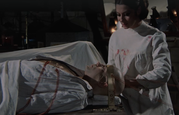 Egging Frankenstein on in his endeavors this time around is his daughter Tania (Rosalba Neri, appearing here under the stage name Sara Bey), who is a surgeon herself and is just as anxious as her father to delve into the mysteries of life and death. Naturally, the Baron resurrects a creature made from the spare parts supplied by his trio of grave robbers, but said creature is not exactly grateful to once again walk among the living and swiftly dispatches Frankenstein with a bear hug worthy of Bruno Sammartino.