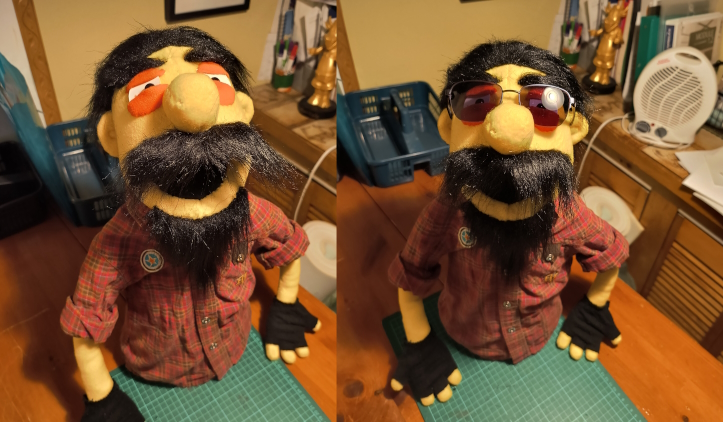Yes, I know, the erstwhile Doc Brown rarely, if ever, has a moustache except in the one TV show episode I was watching around the time I had a very special request from a good friend. Said friend, a nightshift nurse who once cared for me and became a partner in crime when I joined the nightshift myself at the very same hospital, had first asked me to make a few puppets for her grandkids. And then a little later she mentioned that her brother, whose wife had just passed away from cancer, seemed to find solace in using the kids’ puppets to amuse them and himself.