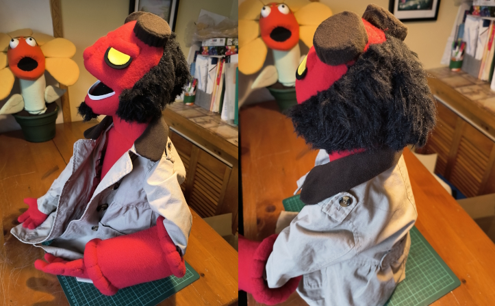 But I also had a ton of red fabric leftover from my Deadpool build, so what the Heck, I went with the BPRD’s badass instead. You can guess by the eyes and nose that I modelled it more after the comics version than either of the film adaptations, though I did watch The Crooked Man while doing it so I may have leaned a little more toward Jack Kesy than my main man Ron. But mad respect to both, for they headlined a movie that isn’t the mediocre entry led by David Arbour. Full disclosure: I intend to redo the hand of doom, which, YES, I made on the left, because I’m a lefty and I’m empowering my people dammit!