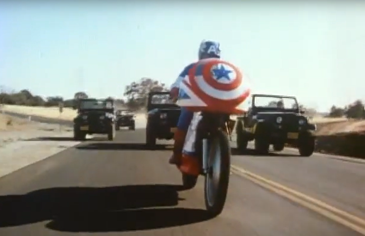 Drake’s review: I wasn’t going to review this one. Honestly, after 1979’s Captain America I was ready to move on and once again happily dive into that ever-reliable 1970s cinematic trash heap in search of my next review, and foist the sequel off on another unsuspecting Mutant* come Mutant Swap week. But when I eagerly walked into Justin’s office with a list of Jesús Franco movies in one hand and a handful of Jean Rollin titles in the other, he just shook his head.