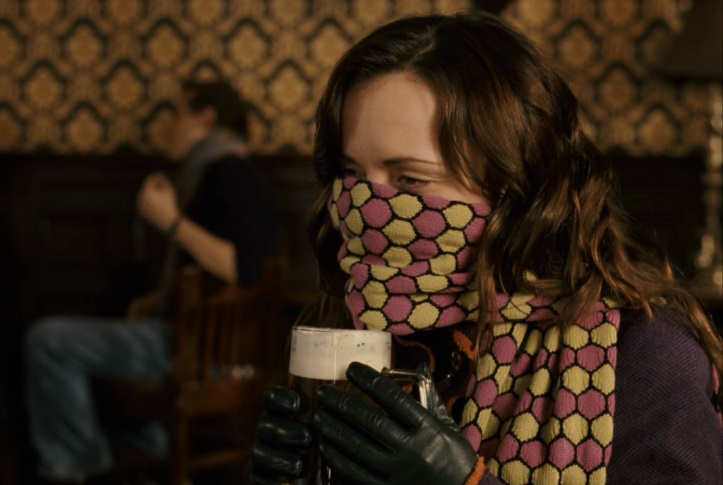 Immediately, Penelope gives off a charming fairy tale vibe that seems to sample from Disney’s oeuvre, including Tangled, Cinderella, and Beauty and the Beast. She’s spent her life hidden away as a monster, kept from socializing outside of the family… until a flawed romantic interest named Johnny (James McAvoy) encourages her to venture out into public — she wears a scarf for the most part — and start her life for real.