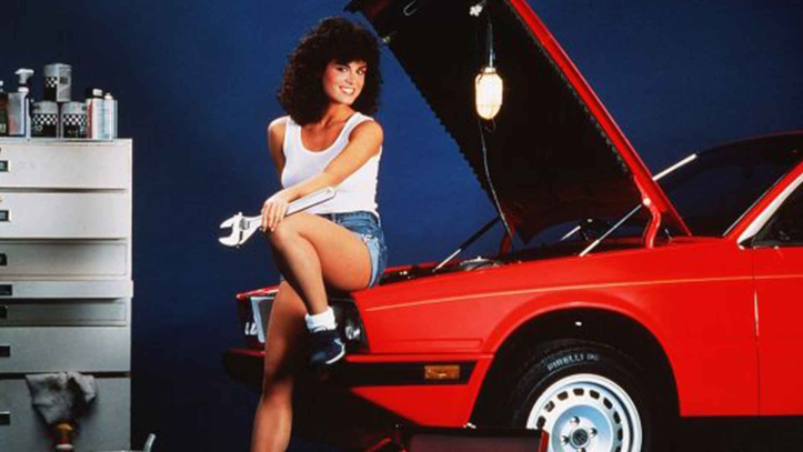So let’s start with 1985’s Tomboy, which I think is the only one that I know from reputation. It stars Betsy Russell (Cheerleader Camp) as Tommy, the mechanic daughter of an astronaut who has aspirations of stock car racing. She’s definitely All Girl but has a rough-and-tumble edge, riding motorcycles, wearing leather jackets, playing basketball, welding, and (of course) working on cars. If anything, it makes her more desirable, because nothing is more attractive than competence.