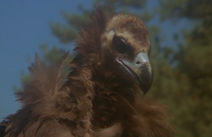 But, no. Steve ignores the menacing soundtrack and the ominous glares from eagle and mountain lion alike, and throws caution to the wind by camping out with this band of tenderfoots* in the wild, where one of the women is attacked by a wolf. Not wanting to turn the whole troop around and presumably hand out refunds, Steve instead sends the woman back down the mountain with her husband, which ends badly when she’s attacked by a flight of hawks and falls off a cliff. Needless to say, her sudden yet inevitable landing on the rocks below is 100% more fatal than the wolf attack.