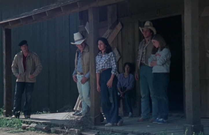 Ostensibly a slasher, Scream opens with a truly nice panoramic shot with three rafts heading down a river. It’s an encouraging start simply because that opening sequence looks so good. But it all goes downhill quickly once the campers** make their trek up the hill and find their destination spot, an abandoned ghost town. And this place is truly abandoned, with nary a piece of furniture left in the empty, wooden buildings. leaving the characters to sit around on bare floors in bare rooms and dashing any hope that this film will live up to that simple but effective opening shot.