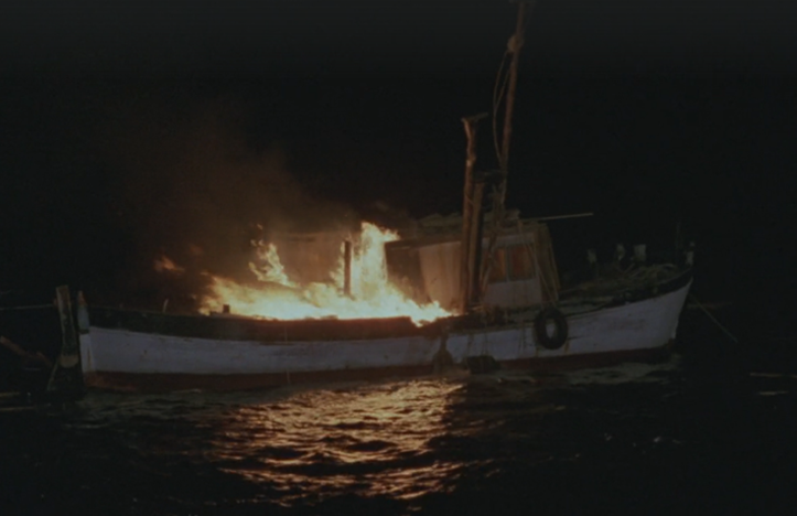 Out of Control isn’t a bad flick, but it does have some serious pacing issues early on. The kids explore the island and find a small lake and the remains of an old building, where they unearth a cache of Spam and vodka.* That keeps the kids from starving, but unfortunately the movie doesn’t really know what to do with them until the drug runners show up. So they basically argue a bit, have a fairly tame fist fight, then drink too much vodka and turn a game of spin the bottle into an impromptu striptease act.