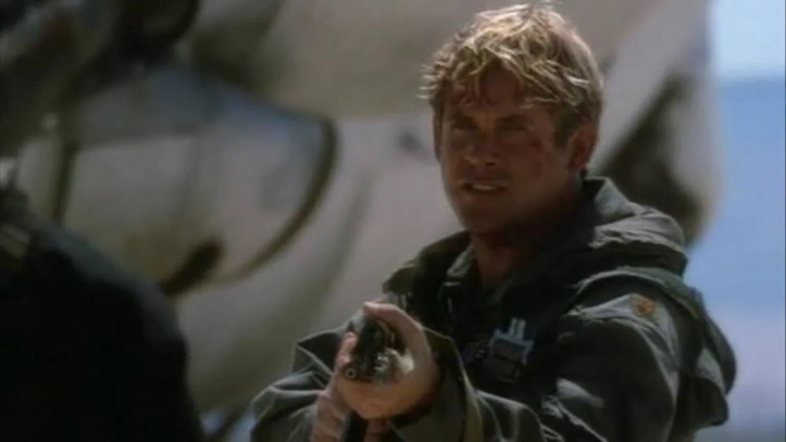 I thought it was hilarious that they send Vince in a hugely expensive Blackbird stealth bomber to track down the stolen plane… and the second he lands it in the desert, the enemy shows up to capture that plane too. But he’s not that concerned about it, going so far as to make gooey eyes with Baywatch star Nancy Valen.