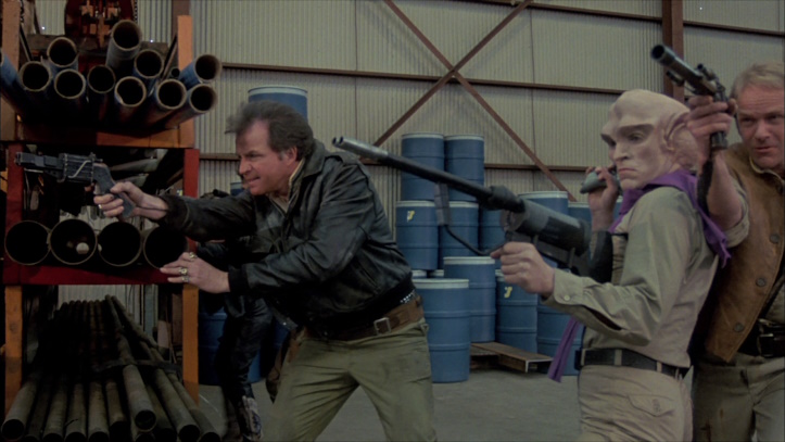 Everyone seems to ding Space Raiders pretty hard for blatantly lifting the music, effects, and models from Battle Beyond the Stars, and that’s a fair observation. Yet it doesn’t stop this from being a fast-paced joyride through the cosmos. The sets are pretty cool in a low-budget way, there’s very little padding to the plot, and there are a ton of kooky alien designs to enjoy.