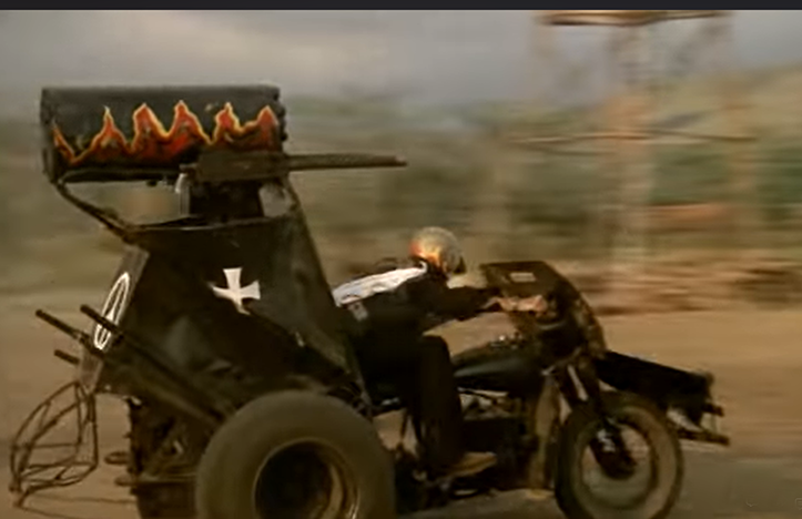 The whole concept of this movie is ludicrous of course, but the cast and crew play it straight the whole time. The Devils Advocates, a motorcycle club consisting of the five scruffy ruffians who take on this job, are brought in because the back trails they’ll be traveling down are too small for standard military vehicles so in this cinematic world motorcycles just make sense. But the bikes need upgrades first, including armor and mounted weapons and maybe a missile launcher or two.