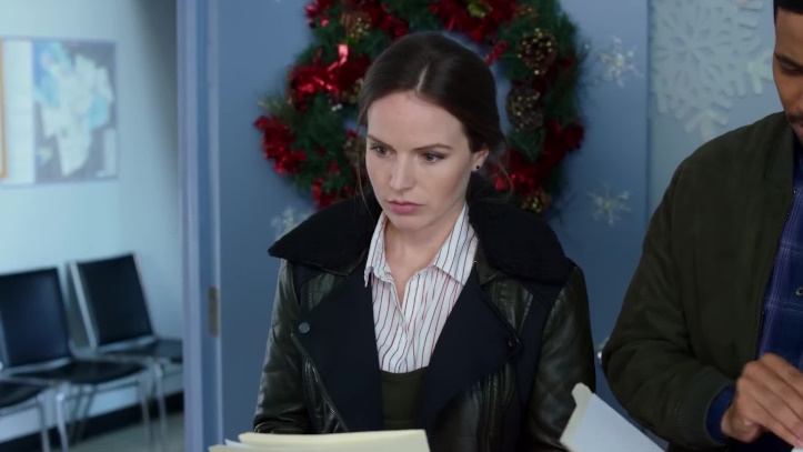 As this budget crime thriller and will they/won’t they romance runs in the background, we discover what this film is truly about: interior holiday decoration. Mack has a Christmas tree and wreath in every room of her house. Mack’s cop mom stuffs so much decoration in her office that the FBI agent audibly wonders what the heck is up with it all. Carson’s house is bursting with Christmas spirit — and he’s a bachelor. Even the stakeout house sports an adorable white tree in the corner.