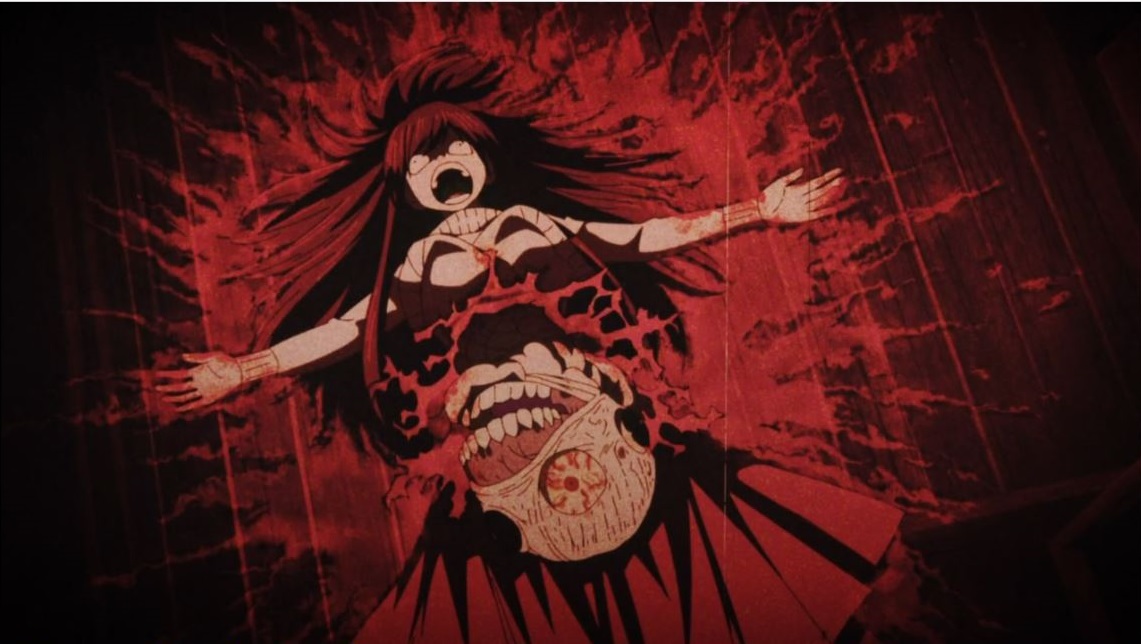 A lot of anime that gets classified as horror strictly speaking isn’t. While shows like Princess Resurrection and Soul Eater do possess some basic horror trappings, they’re more akin to horror’s more butch and adrenaline-fueled half-brother urban fantasy. Actual straight-up horror has a mixed record in the medium. Consider last year’s four-episode adaptation of Junji Ito’s celebrated manga Uzumaki. While the first episode was greeted with considerable praise, the other three provoked much wailing and gnashing of teeth.