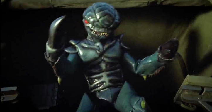 There’s another little alien critter who likes to snuggle with people’s necks, but mostly the main threat is the little Japanese-style rubber suited monster. I hope that kid got paid in more than Reeses Pieces.