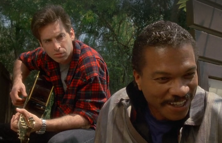 Instead, we get Williams, still in full Lando Calrissian mode, playing the trumpet and chasing both women and criminals, the former with unbridled enthusiasm and the latter simply because that’s what one does in a buddy cop movie. But if Williams is playing the smooth-talking, easy-going cop, then who do you get to play the rougher, gruffer half of the cinematic duo? Well, if you’re Cannon Films, you don’t just think outside the box, you take that box and scrunch it up and throw it in the trash bin, and then you hire the man best known for playing a 30-year-old college nerd.