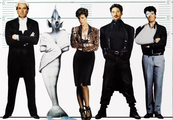 It certainly didn’t hurt this film’s meteoric rise at the box office to be saddled with a great line-up. There’s Jamie Lee Curtis, who I always think did better with sly comedy than slashers, playing the titular Wanda* as a saucy femme fatale. Kevin Kline is the extremely volatile Otto, Michael Palin is stuttering and animal-loving Ken, and the fabulous John Cleese is an English barrister named Archie who’s in a loveless marriage.