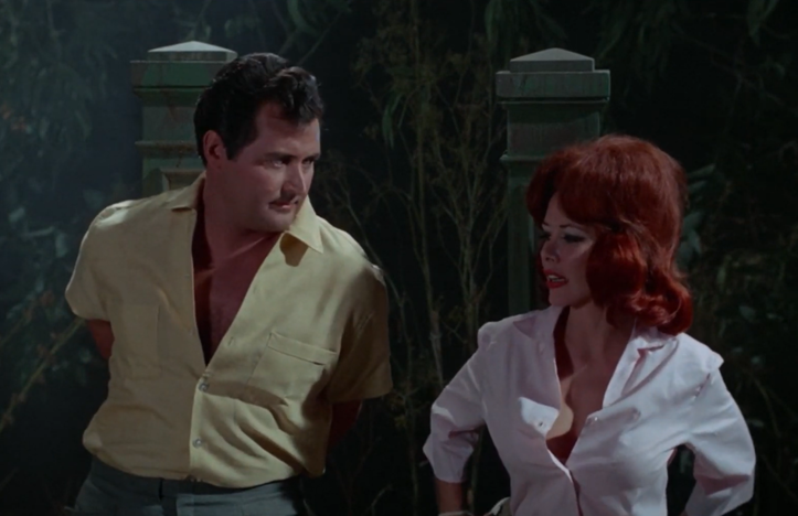 Bob and Shirley are just an average, everyday 1960s couple, driving down the road in their convertible and looking for a cemetery. Bob is a horror novelist, after all, and gets his best inspiration sitting in a graveyard. Shirley (stripper Pat Barrington, appearing here as “Pat Barringer”) isn’t quite so keen on the idea, but a car crash ends their argument and they wake up in an empty field.