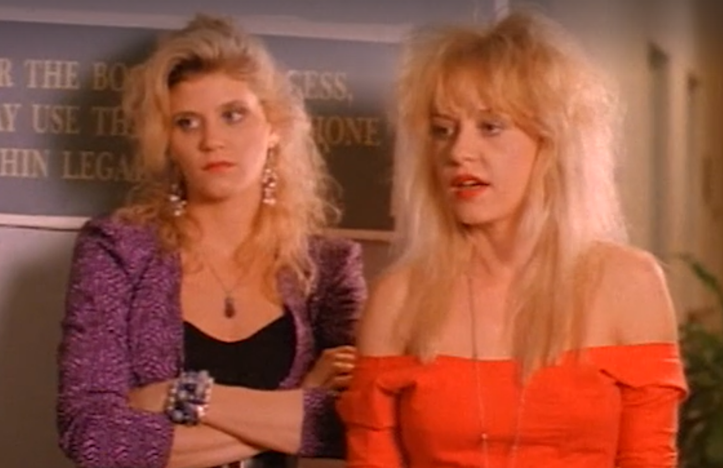 Which is honestly as good an explanation as any as to why I decided that it was somehow a good idea to sit back and take in the first sequel in the Vice Academy series, and watch the further adventures of Didi (Linnea Quigley, Robot Ninja) and Holly (Ginger Lynn, The Devil’s Rejects). Now academy graduates, thus rendering the series title obsolete even though we’re only two movies in, Holly is out busting sex workers on the street while Didi works undercover at a massage parlor where she arrests a guy and then gives him her phone number.*
