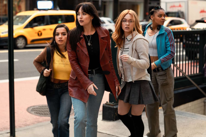 Dakota Johnson, freshly woken from hibernation and not happy about it, is Cassandra Webb, an EMT born of the aforementioned spider-birth. She’s super-dark and glowering and doesn’t “get” kids, which angers the movie irony gods and ensures that she’s going to be babysitting youngsters for the rest of this tale.